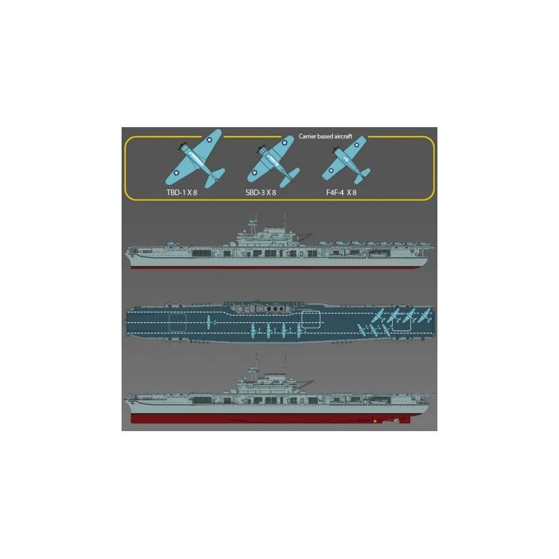 Fiche technique Maquette de bateau en plastique USS CV-6 Enterprise « Battle of Midway » 1:700