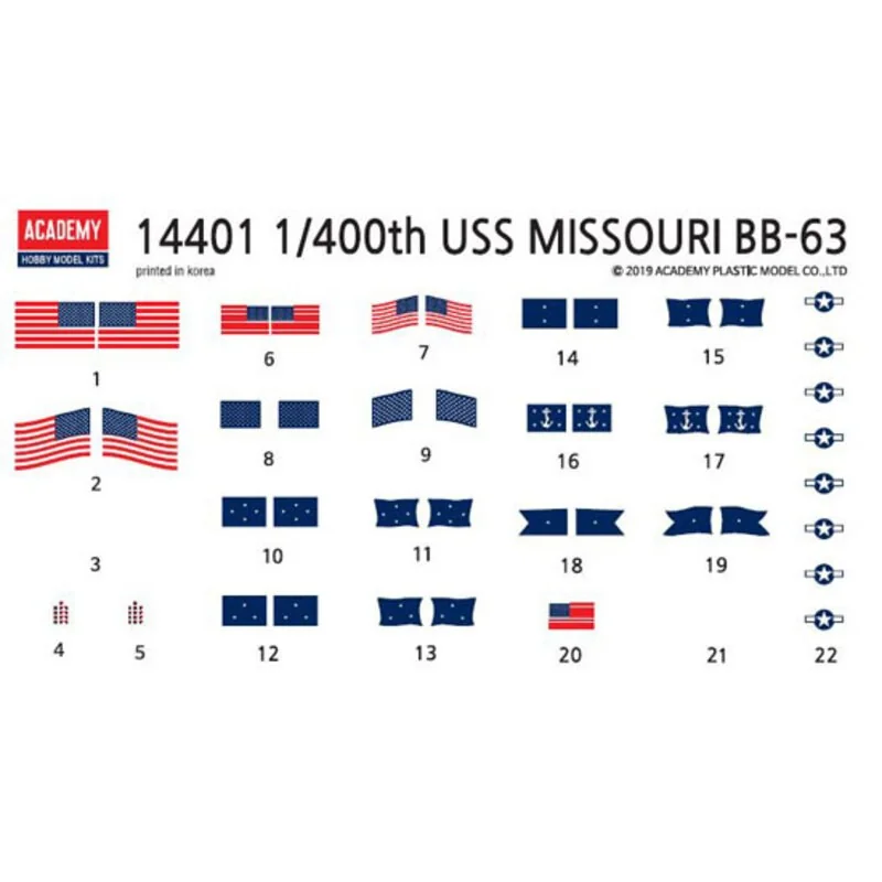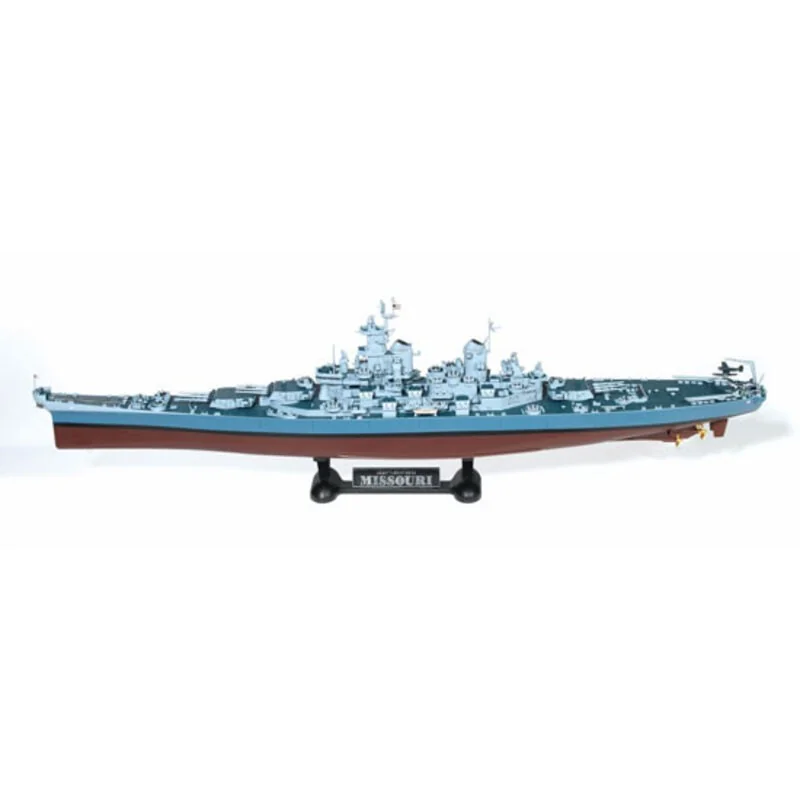 USS Missouri BB-63 1/400Echelle 1/400Maquette plastique à assembler et à peindreVersion courante du navire américain de la seconde guerre mondialeAssemblez les canons anti-aériens de calibre 20mm et 40mm dans les directions de votre choixles 3 tourelles à 3 canons 16 pouces sont pivotantesAvion de reconnaissance inclusSocle inclus