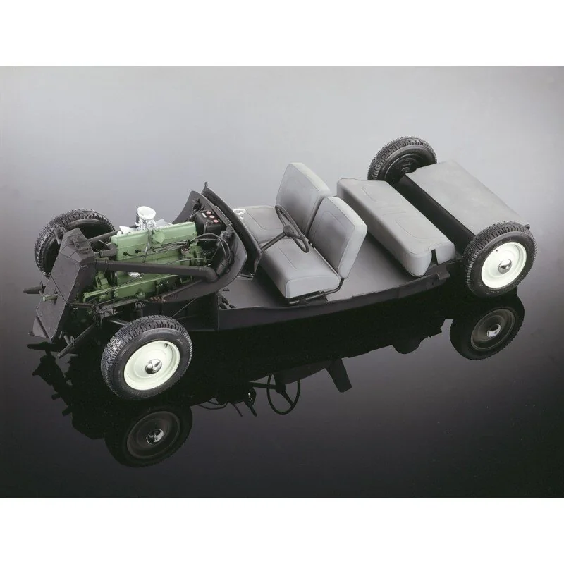 L’authenticité du modèle se reflète à la fois dans la multitude de pièces mécaniques (direction par engrenage, suspension à barre de torsion, mécanisme de porte, coffre, etc.) et dans le choix et la variété des matériaux (4 pneus en caoutchouc dont des pneus de secours, des pièces chromées, des pièces en caoutchouc pour la mécanique, des matériaux pour la décoration intérieure élaborée, etc.).