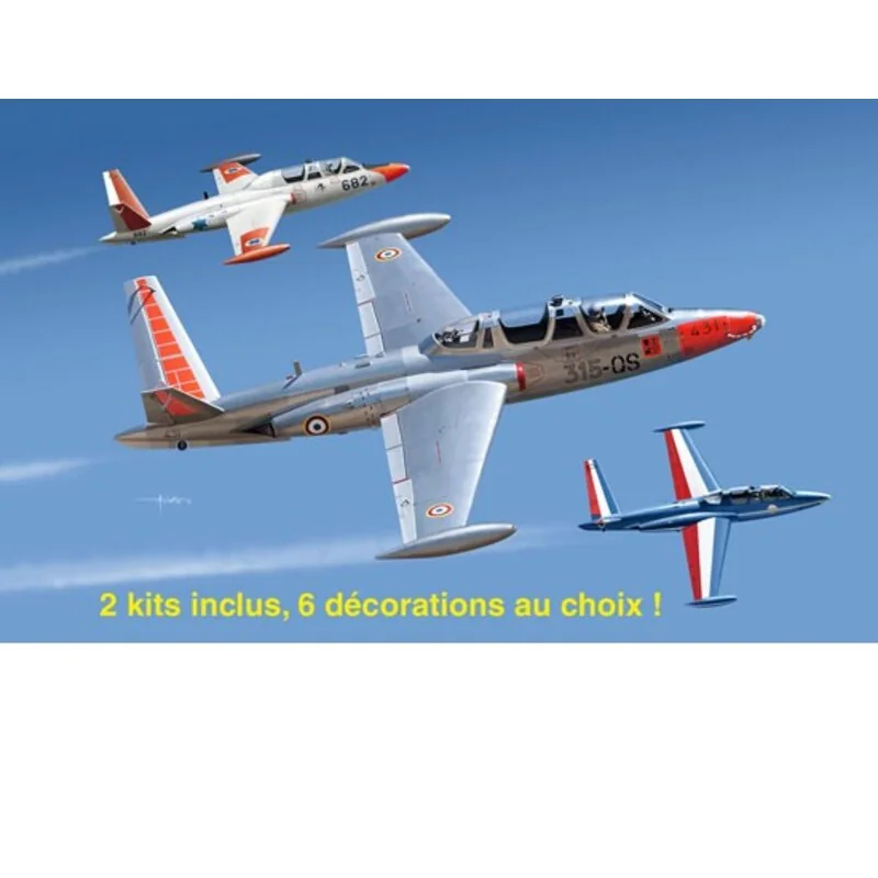 KINETIC inclus dans la boite de son Fouga Magister 2 maquettes complètes pour le prix d’une ! Vous pouvez réaliser 2 maquettes avec au choix 6 décorations dont celle de la Patrouille de France et une autre de l’Armée Française.L’Aérospatiale-Potez-Fouga (en) CM170 Magister est un avion à réaction subsonique conçu en France au début des années 1950, et initialement destiné à l’entraînement des pilotes militaires.