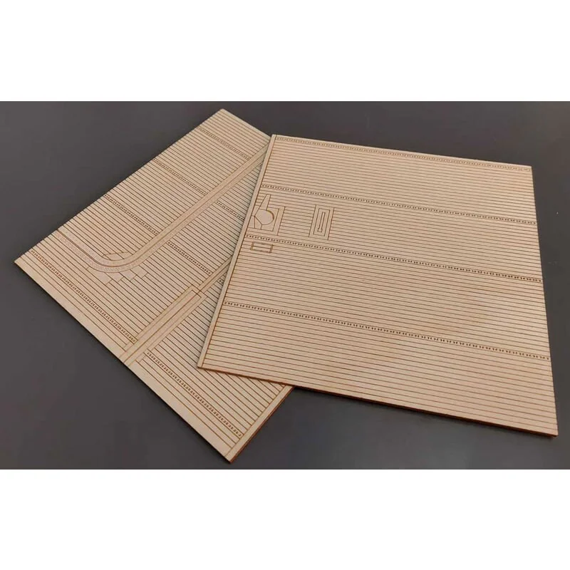 - 2 sections de pont de porte avion type « Casablanca » en contreplaqué gravé au laser de 14.5 x 14.5 cm