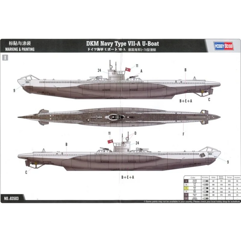 Maquette bateau Deutsche Kriegsmarine Navy Type VII-A U-Boot