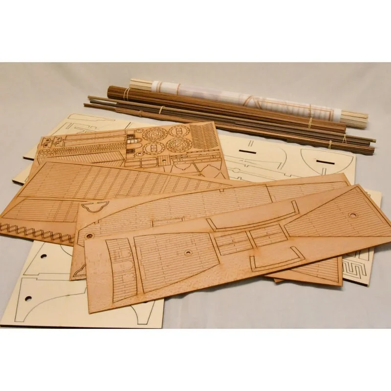 Cette maquette Mantua représente un yacht appartenant à la famille royale anglaise construit en 1749. Elle est décorée de nombreux ornements et les pièces ont été découpées au laser. Elle est à l’échelle 1/47 et ses dimensions sont de 830 x 160 x 610 mm.