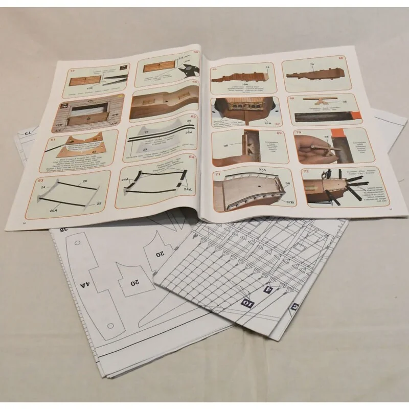 Caravelle de Christophe Colomb faisant partie de l’expédition lancée à la découverte du Nouveau Monde. Construction tout bois par couples et listeaux, pièces découpées au laser. Accastillage complet inclus dans la boite comprenant canons et espingoles tournés en laiton, poulies en buis, ancres, fil pour gréement, lanterne à monter, pièces de décoration en laiton, oriflammes, barques.