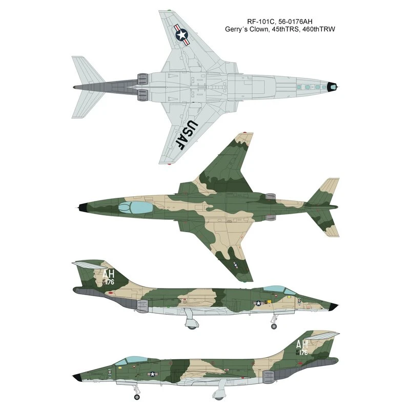 Fiche technique McDonnell RF-101C Voodoo avec 2 options décalque: 1. 56-0228AH, 45thTRS, Les pois, 460thTRW, USAF2. kit Clown, 45thTRS, 460thTRW
