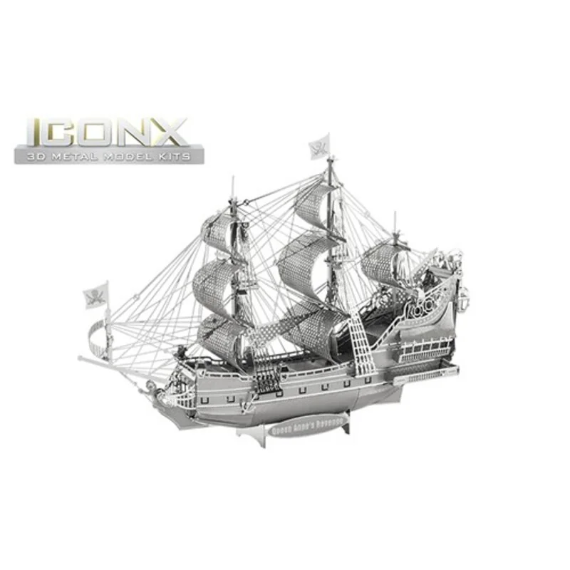 MetalEarth: ICONX – QUEEN ANNE’S REVENGE 10,7×4,3x15cm, maquette 3D en métal avec 2 feuilles, en boîte 13,5x22x2cm, 14+