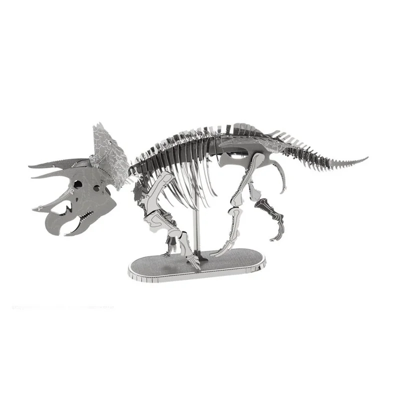 MetalEarth Dinosaures: TRICERATOPS SQUELETTE, maquette 3D en métal avec 2 feuilles, sur carte 12x17cm, 14+