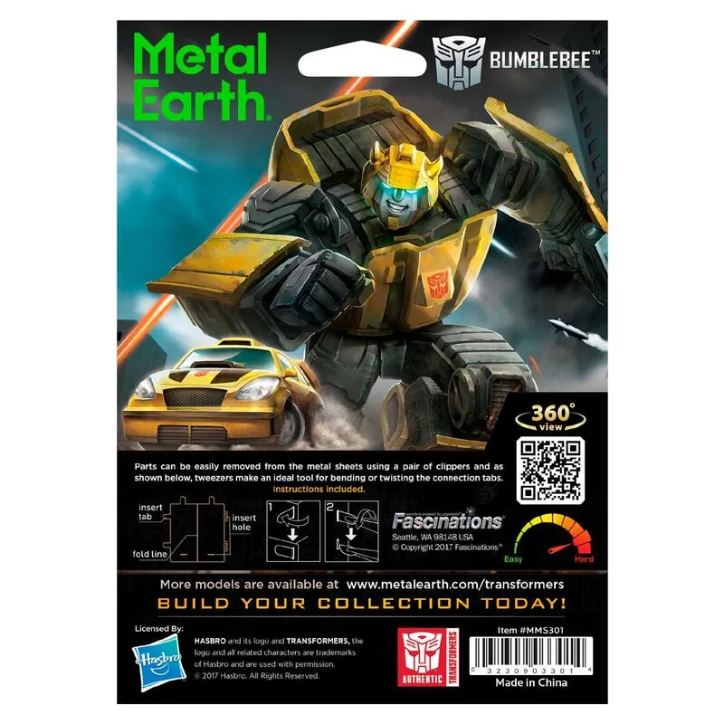 MetalEarth: TRANSFORMERS/BUMBLEBEE 4.5×3.1×8.7cm, maquette 3D en métal avec 2 feuilles, sur carte 12x17cm, 14+