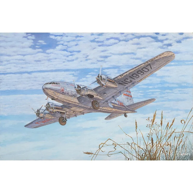 Maquette avion Boeing 307 Stratoliner Au milieu des années 1930, dans le sillage de la croissance rapide du transport aérien de passagers, la Boeing Aircraft Company, tout en s’occupant de la conception d’un bombardier quadrimoteur moderne, a travaillé simultanément à la création d’un nouveau quadrimoteur. avions, destinés à l’aviation civile.